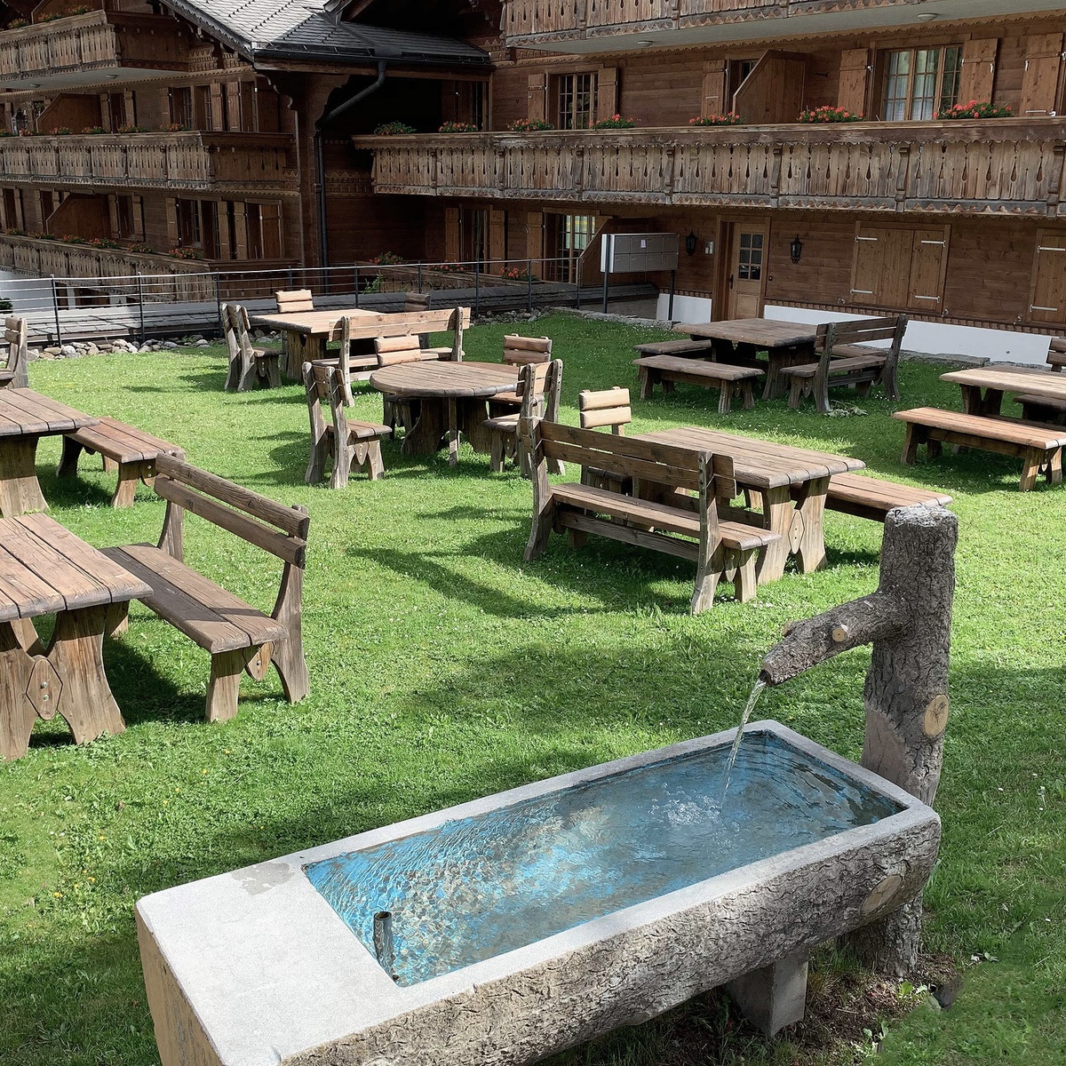 Im neu eröffneten Biergarten von Bruno Kernen lässt sich der Sommer bei bester Aussicht und ebensolcher Laune standesgemäss geniessen. Da lohnt sich der Durst, und auch der Appetit kommt auf seine Kosten: