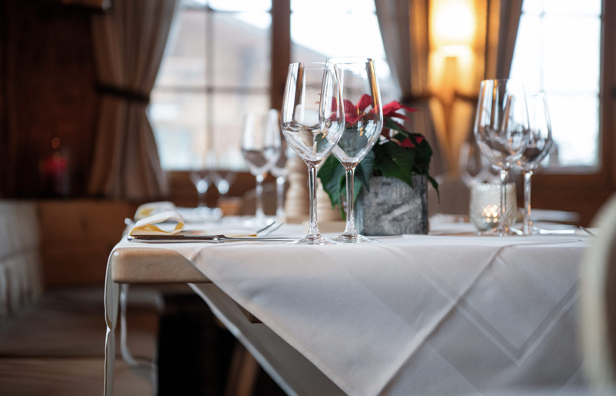 Beautifully furnished in the traditional Saanen style: in our restaurant you can enjoy sophisticated cuisine prepared with the best fresh products from the region. Our specialties in the game season are famous, because our game is shot by the chef himself!