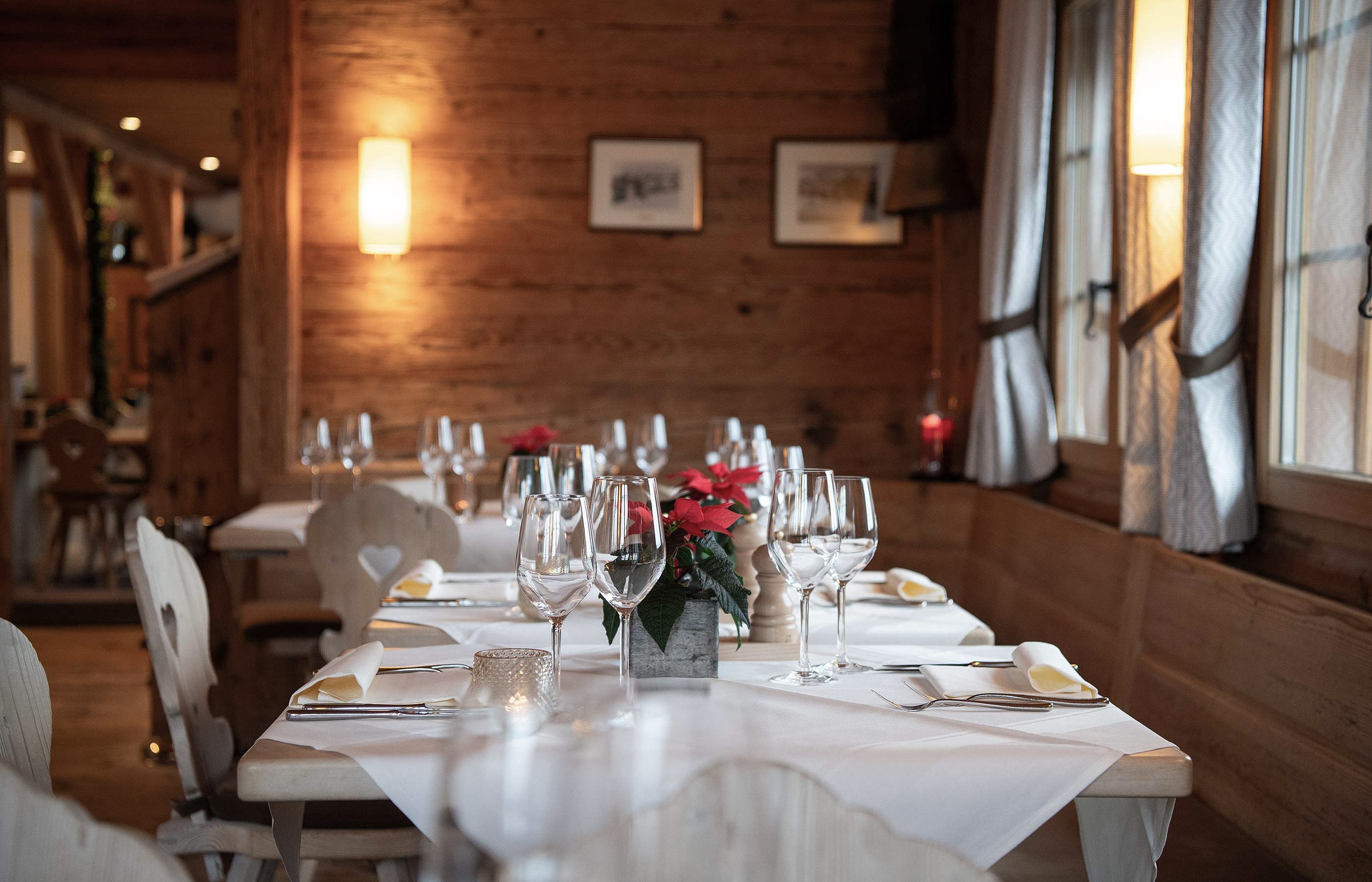 Magnifiquement meublé dans les codes traditionnels du Saanenland, notre restaurant vous accueille pour déguster une cuisine raffinée préparée à partir des meilleurs produits frais de la région. Nos plats de gibier issus de la chasse personnelle de notre chef ont acquis une grande popularité. Plus frais et plus régional que nulle part ailleurs!